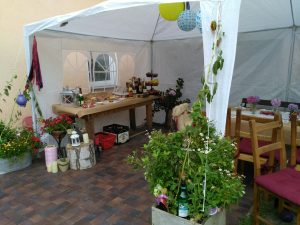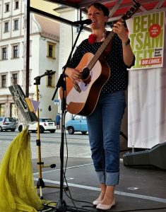 Das Foto, das hier zu sehen ist, ist von der Veranstaltung, die mein nächstes Ziel an diesem Tag war: Eine Wahlveranstaltung meiner Freundin Jana Pinka, die mich für eine Friedensveranstaltung unter dem Motto: „Buntes, offenes Freiberg“ als Musikerin eingeladen hatte: Es erklangen nachdenkliche aber auch lockere Lieder aus meinem Solo-Programm „Conny Borgwardt singt…“, es gab guten Wein, leckeres Fingerfood, bemalte Friedenstauben die an Heliumballons in den Himmel stiegen, einen Kerzenkreis der aus den Freibergern mit einem Licht in den Händen bestand und die zusammen mit mir abschließend „We shall overcome“ sangen und vor allem aus vielen guten Gesprächen. Warme Sommerluft, gemütliches Zusammensein, Wiedersehen mit Freunden aus der Freiberg-Zeit…So schmeckt der Tag!