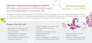 ..nachdem am Samstag bereits viele Manufakturenwelt-/ Genussmeilen- und Hochzeitsmessen-Aussteller ihre hübschen Stände aufgebaut hatten, die Bühne und der Festsaal nach Tagen der Arbeit von vielen fleißigen Mitarbeitern der Deutschen Kunstblume wie eine festliche Blumeninsel ausschaute, machte auch ich mich auf den Weg nach Sebnitz um meinen kleinen Stehtisch-Infostand an die im voraus festgelegte Position zu rücken. Die Stoffbahn ringsherum gewunden, ein bisschen Bildmaterial drapiert, die Flyer entblättert und mit zielsicherem Blick zur Deko den teuersten Seidenblumenstrauß des gesamten Ladens im Erdgeschoss erkoren…den ich am Montag natürlich brav wieder an seinen angestammten Platz dorthin zurückstellte. Jeder der Aussteller durfte nämlich für die Deko seines Standes die Blümchen seines Geschmackes aus der Auswahl der Deutschen Kunstblume leihen. So erstrahlte die Veranstaltung, nicht nur in der Manufaktur an sich sondern auch in der Festhalle in ganz frühlingshaftem strahlendem Blumen-Licht. Die Sonne tat ihr Übriges und so konnten alle Angebote im Inneren als auch draußen in vollen Zügen genossen werden.