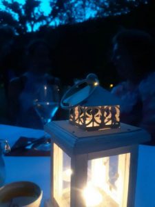 …dieser Duft, dieser laue Abendwind, der über die Elbe streicht und doch nur noch als Lüftchen am Ufer ankommt…das zarte Plätschern der Wellen ganz in der Nähe, Laternen und Windlichter in den schönen hohen Bäumen und eine lange Tafel, gefüllt mit Leckereien, leise Musik, ein Blumenreigen, der sich mit den Farben des bunten Obstes in grazilen Gläsern mischt und um den Tisch herum eine Menge netter Leute, die mit ihren Weingläsern mal hier, mal dort Platz nehmen, um sich zu unterhalten: So muss ein lauschiger Abend aussehen. Ausprobiert haben wir das, angeregt durch das neue Projekt unseres Partnerhotels „Parkhotel Bad Schandau“, namens „mit Glas im Gras“. Schön kühl fühlte sich das Gras tatsächlich an und so mancher Gast löste ganz schnell die Verschlüsse der leichten Schuhe, um das Flair, mitten in der Natur an den Elbwiesen, noch greifbarer zu spüren. Tatsächlich hatte man den Eindruck, dort im nur schemenhaft beleuchteten Teil der Wiese tanzten Feen deren glitzernden Reigen. Wie zauberhaft! Wer könnte sich nicht in den schönsten Farben auch den Ausklang des eigenen Hochzeitstag, des Geburtstages, einfach eines ganz besonderen Tages auf diese Art und Weise in dessen Park-ähnlichen Gelände und den nahezu verwunschenen Ecken des weitläufigen Gartens ausmalen? Probieren Sie es aus!